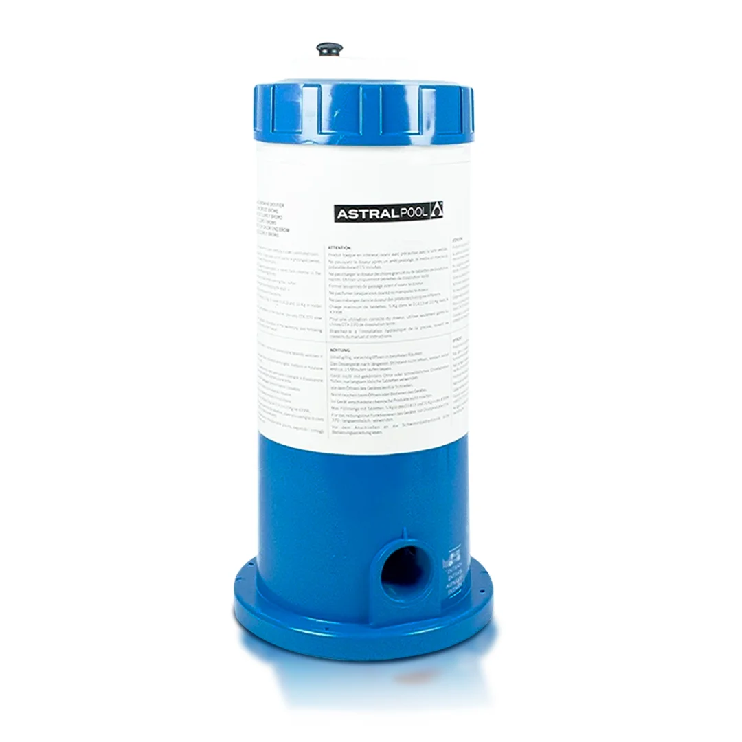 El Clorador en Línea AstralPool con capacidad para 5kg, está construido con materiales plásticos inalterables, garantizando durabilidad y resistencia a los elementos. El kit de conexiones de 1 ½ pulgadas te permiten una fácil instalación en el sistema de filtración de tu piscina. Además, se suministra con 2 válvulas de regulación, permitiéndote ajustar la dosificación según las necesidades específicas de desinfección.