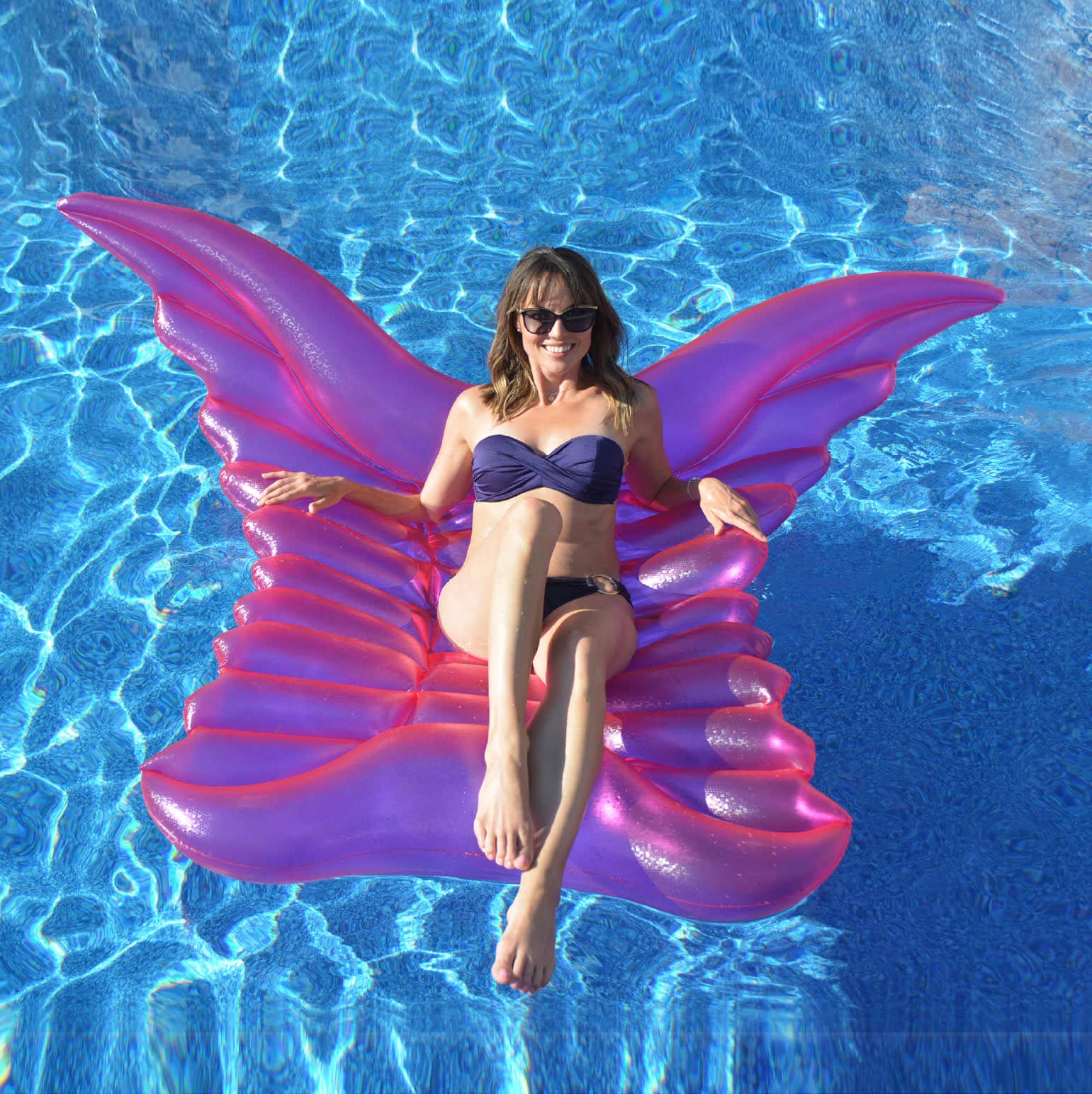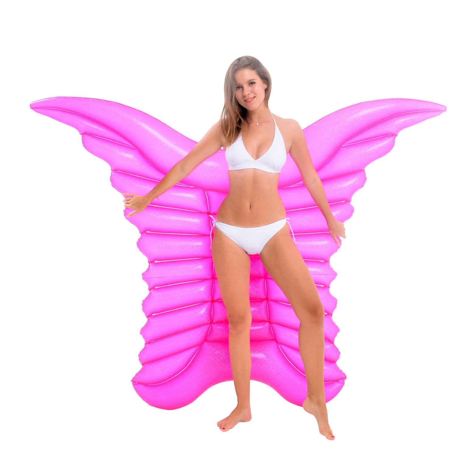 Colchoneta Inflable con forma de Alas de Ángel. Válvula de seguridad. Vinilo resistente comprobado. Incluye un parche de alta resistencia para reparaciones.