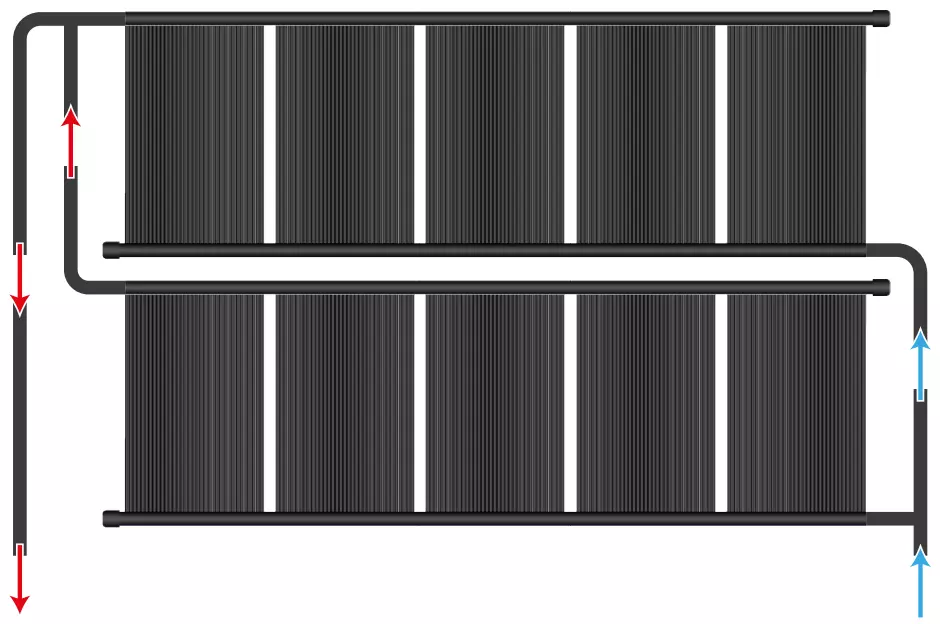 Colector solar de piscina para uso residencial o comercial, fabricado en Estados Unidos por Aquatherm, modelo UltraSwim – el mayor fabricante internacional de soluciones de climatización solar para piscinas.