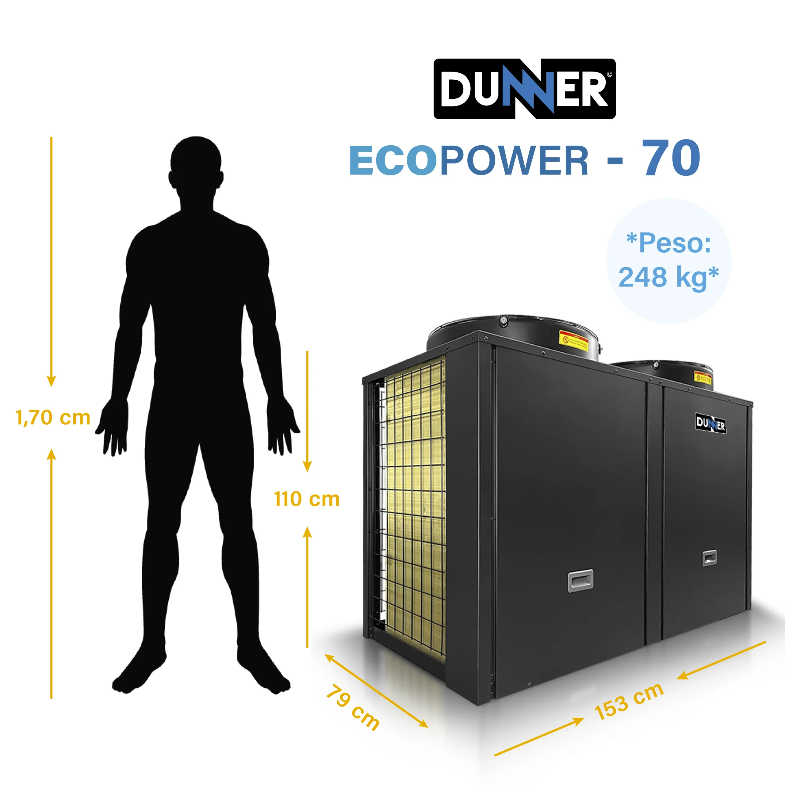 Bomba de Calor para Piscinas Dunner ECOPOWER-70 para Temperado de Piscinas de hasta 250 M3 – INCLUYE INSTALACIÓN