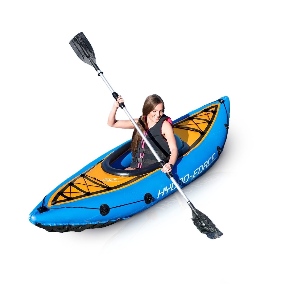 Con el Kayak Inflable Cove, puedes llevar la diversión al lago, el rio o el océano. Diseñado para una configuración fácil y rápida. saca a la luz tu explorador interno y que la aventura sea tu motivo.