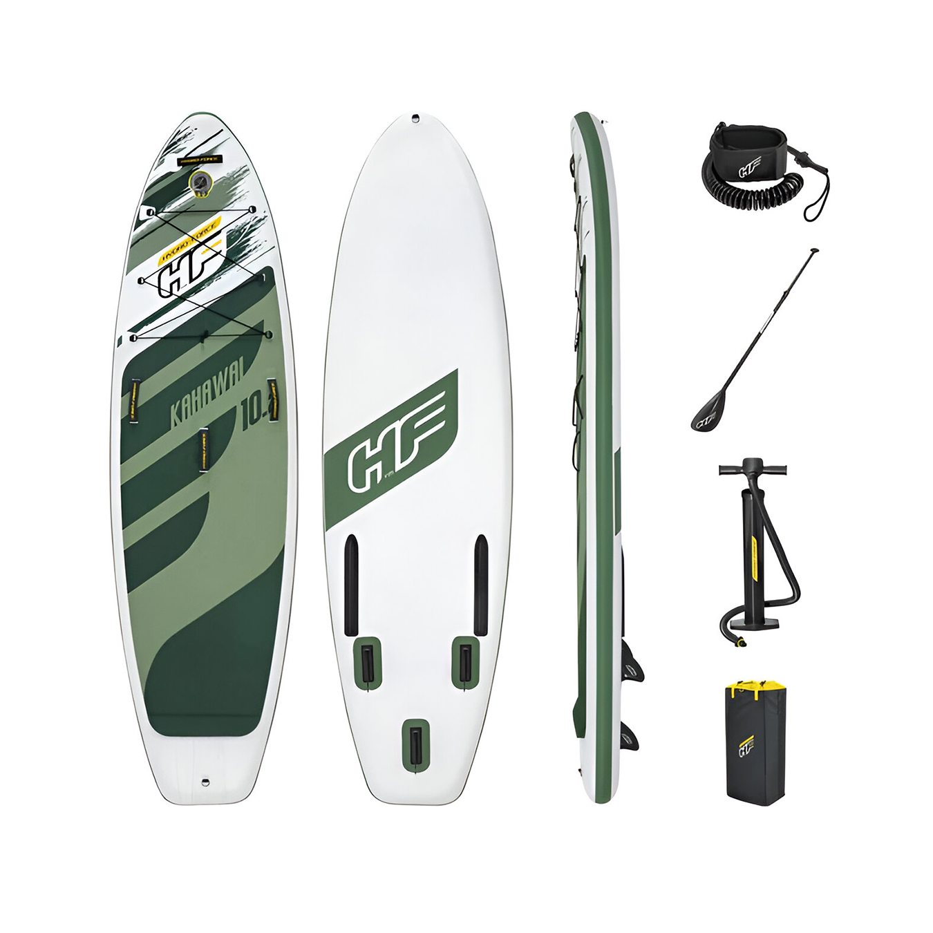 El Hydro-Force Kahawai es un SUP inflable versátil que te permite navegar por el agua con estilo y gracia. Esta tabla presenta una gran almohadilla de 310 cm con tracción antideslizante están diseñados para largos recorridos en ríos, playas o lagos. Esta presentación viene en un color tostado, verde, amarillo y con gráficos atractivos que hacen que las fotos sean dignas de compartir. El gran tamaño de este paddle se combina con 5 asas de cubierta para que siempre puedas agarrar y tirar de su tabla en cualquier condición. Tres aletas del propulsor están integradas en la parte inferior del tablero para maniobrabilidad y equilibrio.